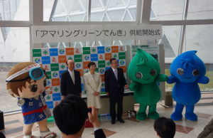 岩手県企業局、久慈市、久慈地域エネルギーが連携し、地元の水力発電所(滝発電所)で作られた再生可能エネルギーの電気を4月1日より久慈市アンバーホール(文化会館)に供給を開始するにあたり、久慈地域エネルギーでは、この再エネ電気を「アマリングリーンでんき」と名付け、3月27日(金)久慈市アンバーホール1Fホールにて「アマリングリーンでんき供給開始式」を開催いたしました。